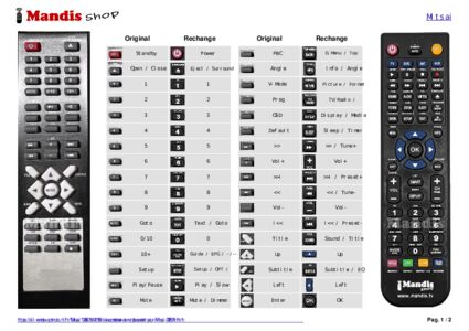 Un document est inclus pour vous aider à utiliser facilement la nouvelle télécommande, en indiquant la correspondance des boutons.