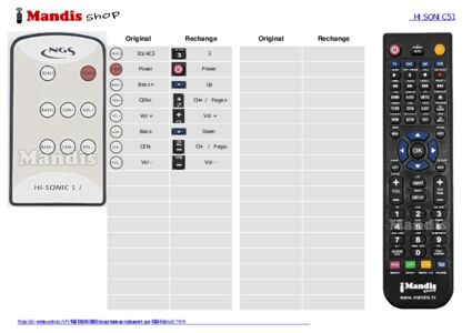 Cette télécommande remplace entièrement votre Hi-Sonic 5.1 et offre toutes les fonctions de l'originale.