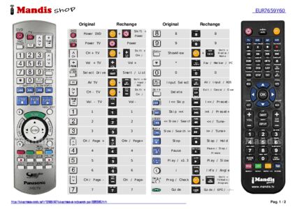 Un document est inclus pour vous aider à utiliser facilement la nouvelle télécommande, en indiquant la correspondance des boutons.