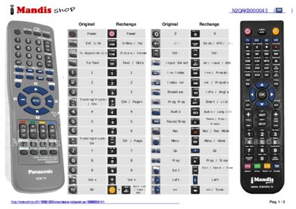 Un document est inclus pour vous aider à utiliser facilement la nouvelle télécommande, en indiquant la correspondance des boutons.