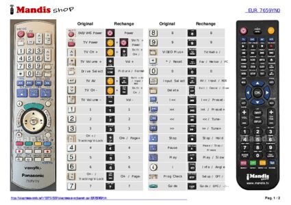 Un document est inclus pour vous aider à utiliser facilement la nouvelle télécommande, en indiquant la correspondance des boutons.
