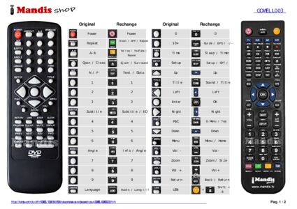 Un document est inclus pour vous aider à utiliser facilement la nouvelle télécommande, en indiquant la correspondance des boutons.