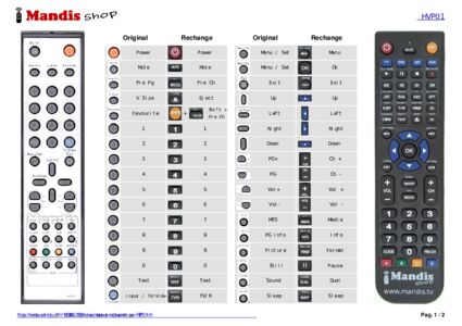 Un document est inclus pour vous aider à utiliser facilement la nouvelle télécommande, en indiquant la correspondance des boutons.
