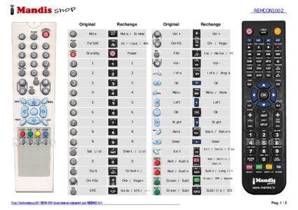 Un document est inclus pour vous aider à utiliser facilement la nouvelle télécommande, en indiquant la correspondance des boutons.