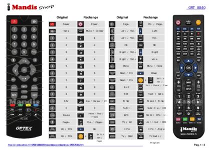 Cette télécommande remplace entièrement votre ORT 8840 et offre toutes les fonctions de l'originale.