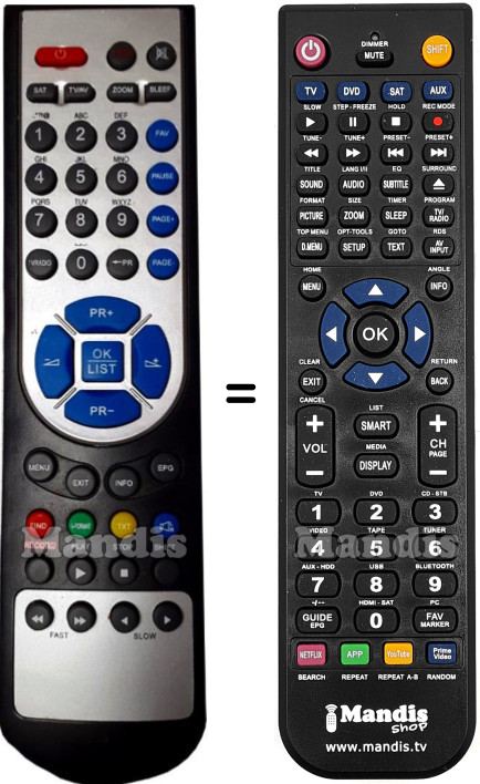 Télécommande qui remplace celle d'origine car elle possède les mêmes fonctions.