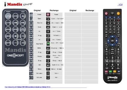 Un document est inclus pour vous aider à utiliser facilement la nouvelle télécommande, en indiquant la correspondance des boutons.