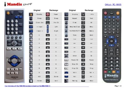 Un document est inclus pour vous aider à utiliser facilement la nouvelle télécommande, en indiquant la correspondance des boutons.