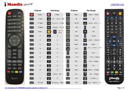 Un document est inclus pour vous aider à utiliser facilement la nouvelle télécommande, en indiquant la correspondance des boutons.