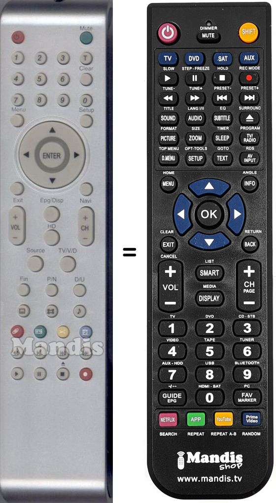 Télécommande qui remplace celle d'origine car elle possède les mêmes fonctions.