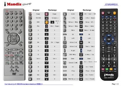 Un document est inclus pour vous aider à utiliser facilement la nouvelle télécommande, en indiquant la correspondance des boutons.