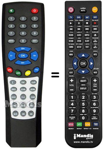 Télécommande qui remplace celle d'origine car elle possède les mêmes fonctions.