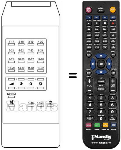 Télécommande qui remplace celle d'origine car elle possède les mêmes fonctions.