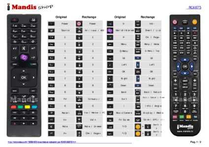Un document est inclus pour vous aider à utiliser facilement la nouvelle télécommande, en indiquant la correspondance des boutons.