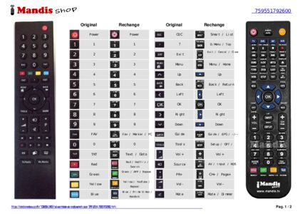 Un document est inclus pour vous aider à utiliser facilement la nouvelle télécommande, en indiquant la correspondance des boutons.