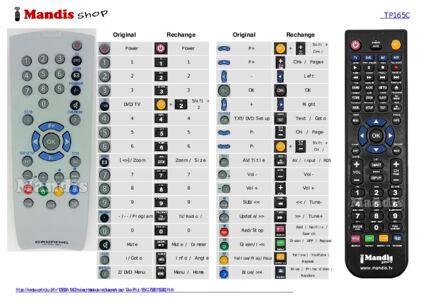 Un document est inclus pour vous aider à utiliser facilement la nouvelle télécommande, en indiquant la correspondance des boutons.