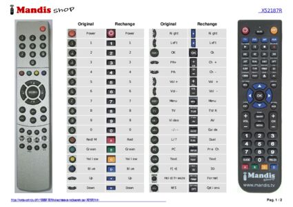 Un document est inclus pour vous aider à utiliser facilement la nouvelle télécommande, en indiquant la correspondance des boutons.