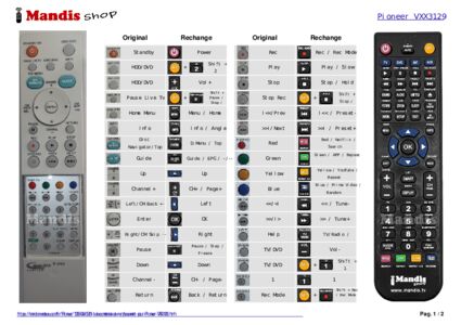 Un document est inclus pour vous aider à utiliser facilement la nouvelle télécommande, en indiquant la correspondance des boutons.