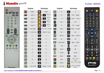 Un document est inclus pour vous aider à utiliser facilement la nouvelle télécommande, en indiquant la correspondance des boutons.