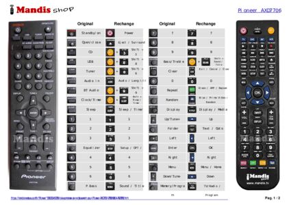 Un document est inclus pour vous aider à utiliser facilement la nouvelle télécommande, en indiquant la correspondance des boutons.