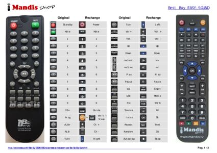 Un document est inclus pour vous aider à utiliser facilement la nouvelle télécommande, en indiquant la correspondance des boutons.