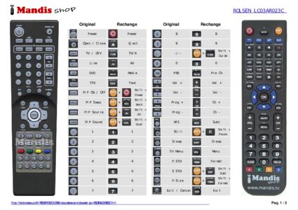 Un document est inclus pour vous aider à utiliser facilement la nouvelle télécommande, en indiquant la correspondance des boutons.