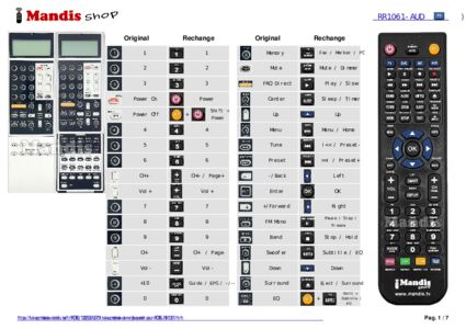 Un document est inclus pour vous aider à utiliser facilement la nouvelle télécommande, en indiquant la correspondance des boutons.