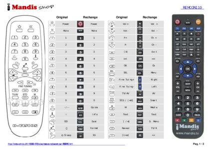 Un document est inclus pour vous aider à utiliser facilement la nouvelle télécommande, en indiquant la correspondance des boutons.