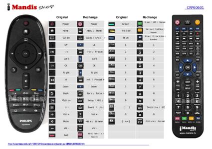 Un document est inclus pour vous aider à utiliser facilement la nouvelle télécommande, en indiquant la correspondance des boutons.
