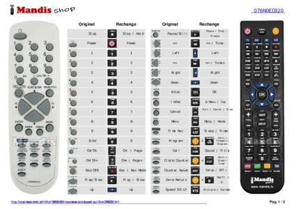 Un document est inclus pour vous aider à utiliser facilement la nouvelle télécommande, en indiquant la correspondance des boutons.