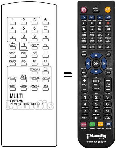 Télécommande qui remplace celle d'origine car elle possède les mêmes fonctions.