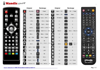 Un document est inclus pour vous aider à utiliser facilement la nouvelle télécommande, en indiquant la correspondance des boutons.