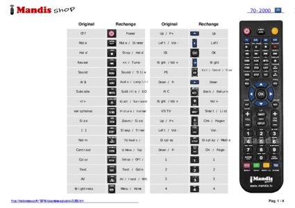 Un document est inclus pour vous aider à utiliser facilement la nouvelle télécommande, en indiquant la correspondance des boutons.