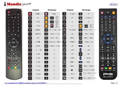 Un document est inclus pour vous aider à utiliser facilement la nouvelle télécommande, en indiquant la correspondance des boutons.