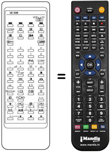 Télécommande qui remplace celle d'origine car elle possède les mêmes fonctions.