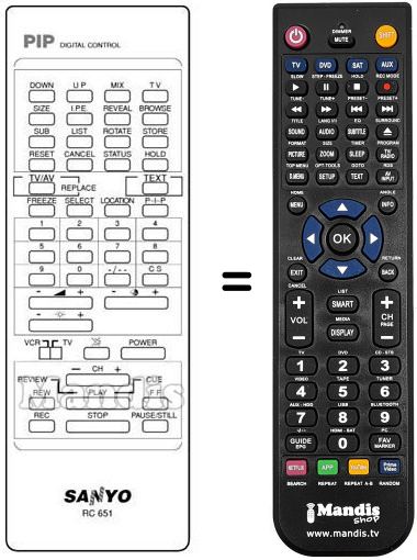 Télécommande qui remplace celle d'origine car elle possède les mêmes fonctions.