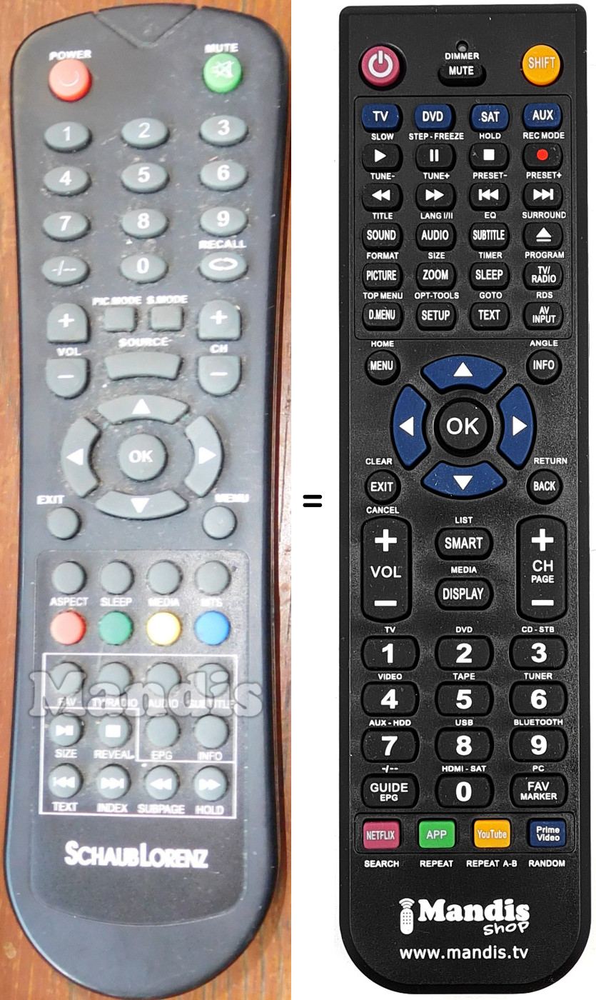 Télécommande qui remplace celle d'origine car elle possède les mêmes fonctions.