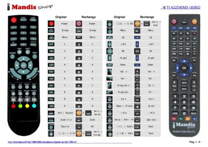 Un document est inclus pour vous aider à utiliser facilement la nouvelle télécommande, en indiquant la correspondance des boutons.