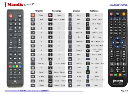 Un document est inclus pour vous aider à utiliser facilement la nouvelle télécommande, en indiquant la correspondance des boutons.