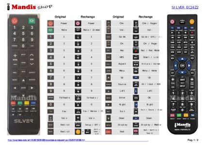 Un document est inclus pour vous aider à utiliser facilement la nouvelle télécommande, en indiquant la correspondance des boutons.