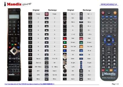 Un document est inclus pour vous aider à utiliser facilement la nouvelle télécommande, en indiquant la correspondance des boutons.