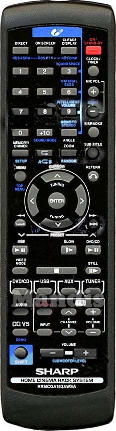 Télécommande d'origine RRMCGA163AWSA pour home cinema de la marque Sharp. Il s'agit d'un modèle de télécommande d'origine.