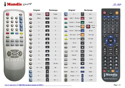 Cette télécommande remplace la plupart des fonctions de votre ST-06R. Il ne s'agit pas d'une télécommande universelle, mais d'une copie avec la plupart des touches et des fonctions de votre télécommande d'origine.