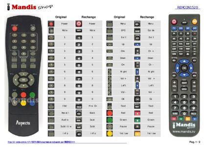 Un document est inclus pour vous aider à utiliser facilement la nouvelle télécommande, en indiquant la correspondance des boutons.