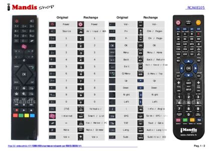 Cette télécommande remplace entièrement votre RCA48105 (30092064) et offre toutes les fonctions de l'originale.