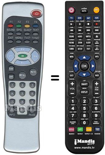 Télécommande qui remplace celle d'origine car elle possède les mêmes fonctions.