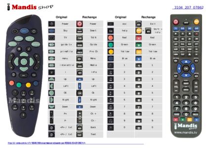 Un document est inclus pour vous aider à utiliser facilement la nouvelle télécommande, en indiquant la correspondance des boutons.