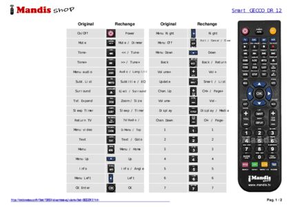 Un document est inclus pour vous aider à utiliser facilement la nouvelle télécommande, en indiquant la correspondance des boutons.