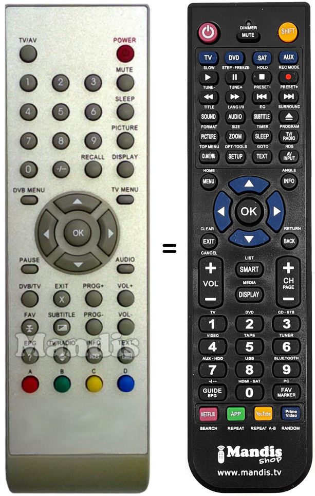 Télécommande qui remplace celle d'origine car elle possède les mêmes fonctions. Il ne s'agit pas d'une télécommande universelle mais d'une télécommande qui remplace celle d'origine. Vous recevrez la télécommande prête à fonctionner, vous n'aurez qu'à mettre les piles. Il n'est pas nécessaire de la programmer. Nous vous garantissons que la télécommande aura exactement les mêmes fonctions que celle d'origine.