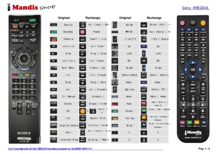 Un document est inclus pour vous aider à utiliser facilement la nouvelle télécommande, en indiquant la correspondance des boutons.